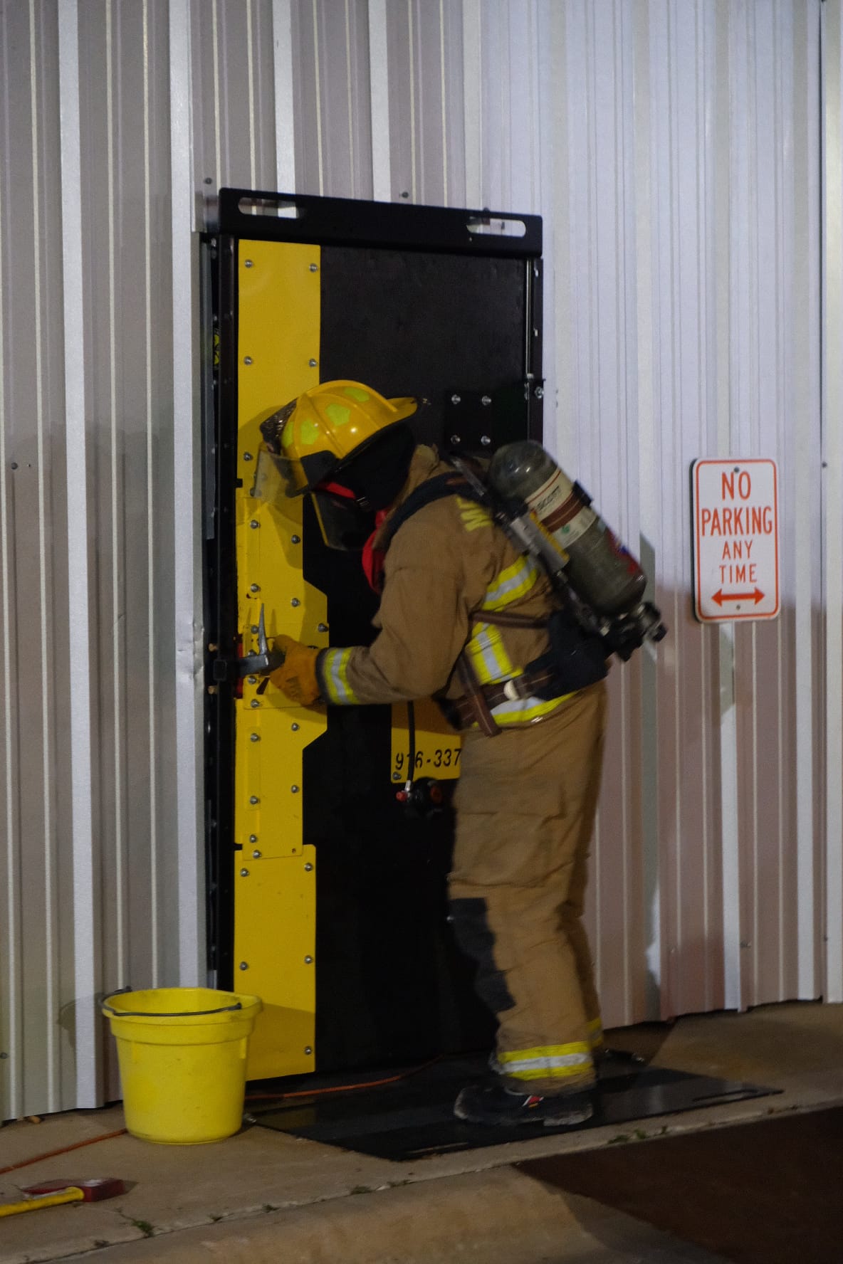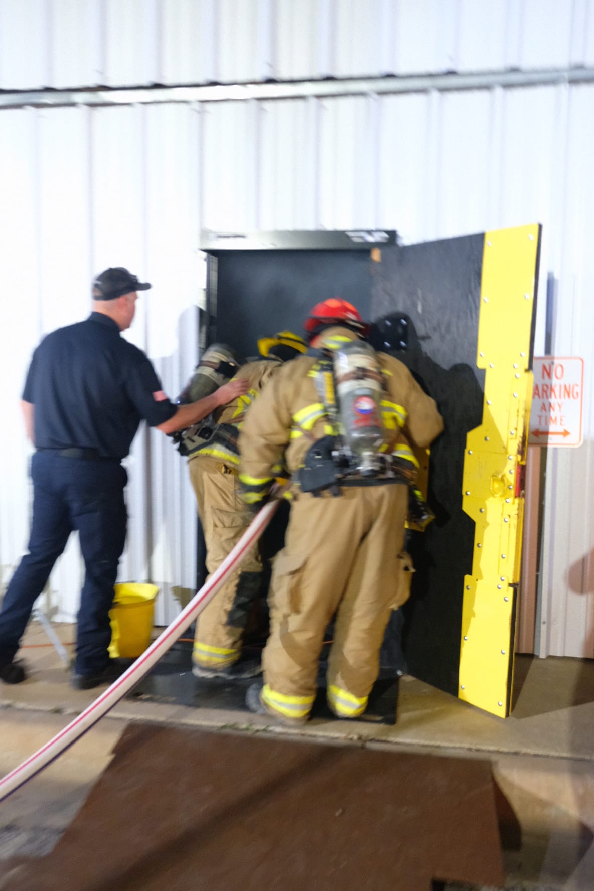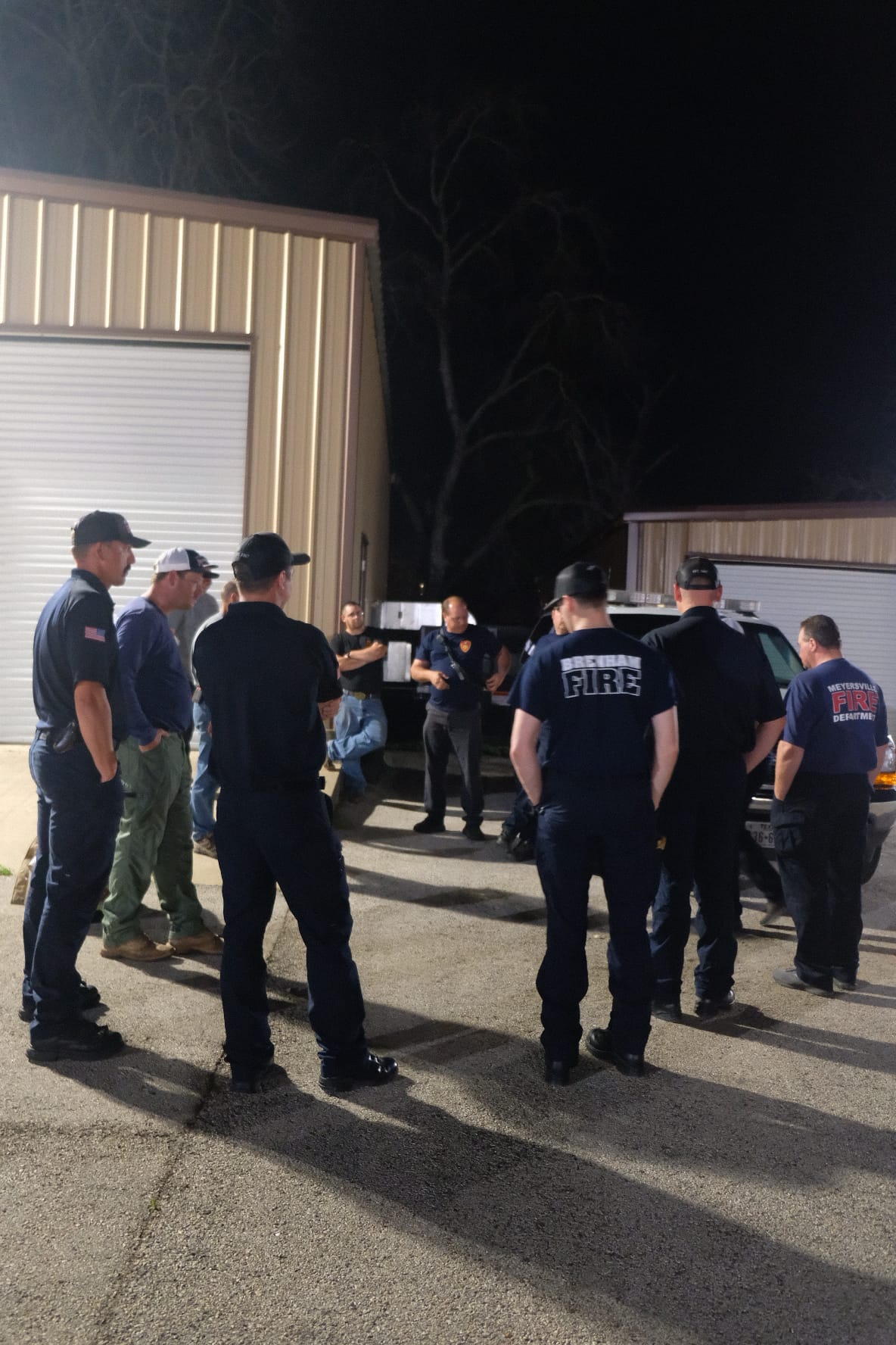 Last night Meyersville VFD had training with Brenham FD. They created a situation where a crew would respond to a working structure fire and they practiced forcible entry, search & rescue, deploying a cross lay, and a simulated fire attack. They also learned how to deploy the Burleson load.